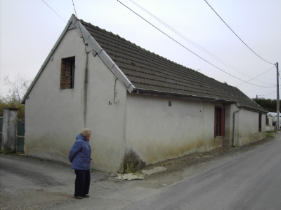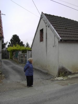 Mme Pellerin à l'angle de l'ancienne maison de la famille Barrard qui a hébergé mon père Lucien Bignon. |