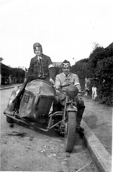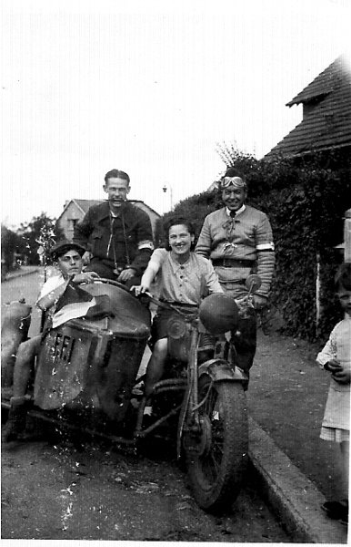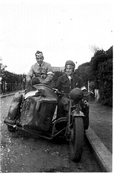 Photos extraites du livre : 1944 PLAN SUSSEX MISSION DARU - Raymond Mocquet alias Vermuge et son radio Lucien Bignon alias Marcel Rogier avec leur Side-car volé à Sézanne |
